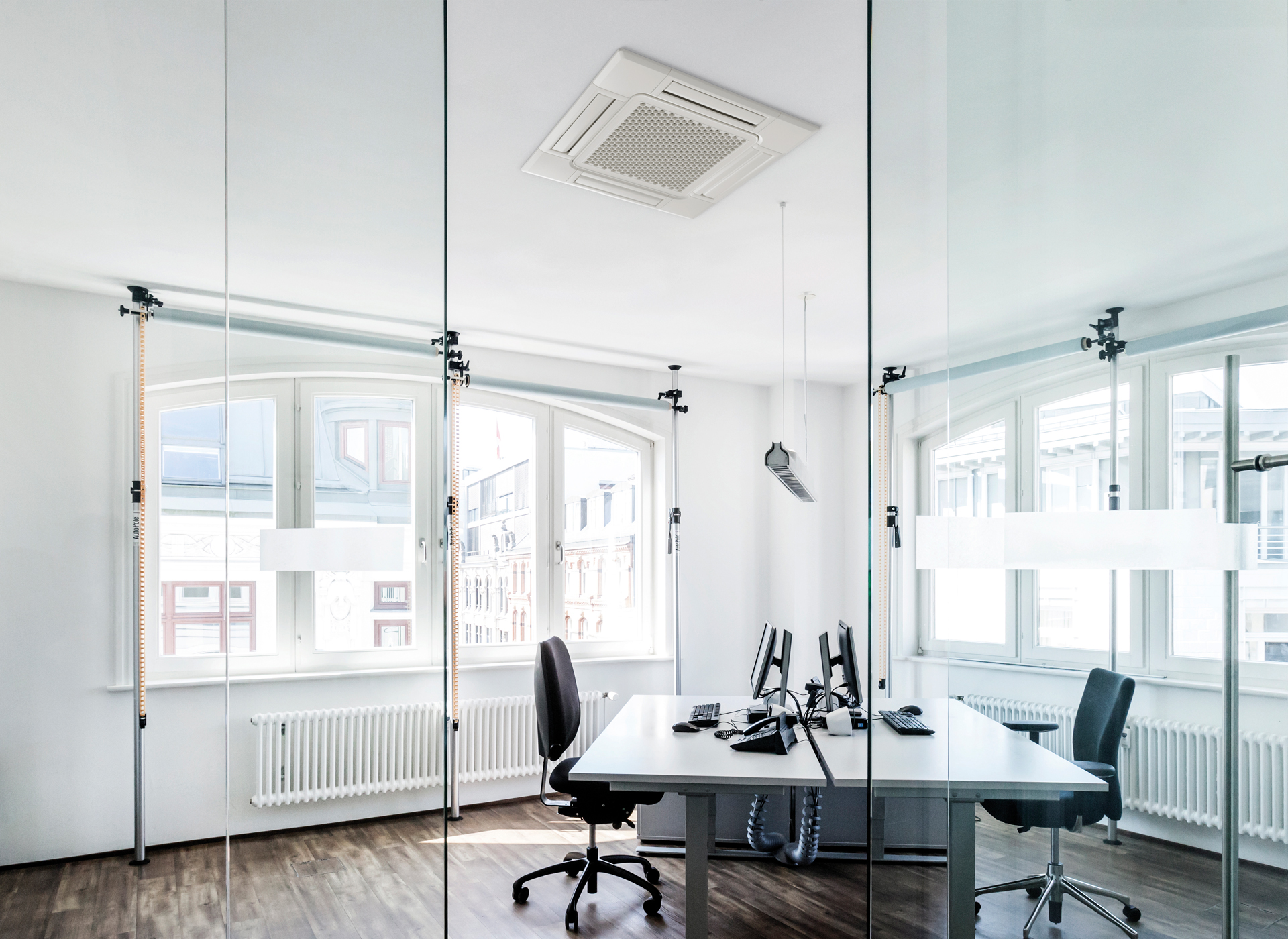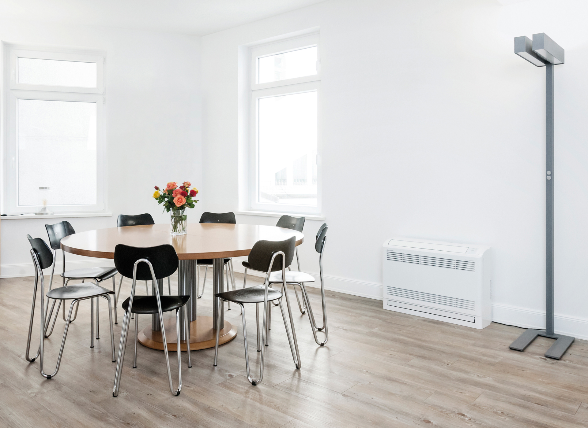 Zum Beispiel mit Single-Splitgeräten. Die einfache Art für Kühlen und Heizen, als Wand- oder Deckenmontage.